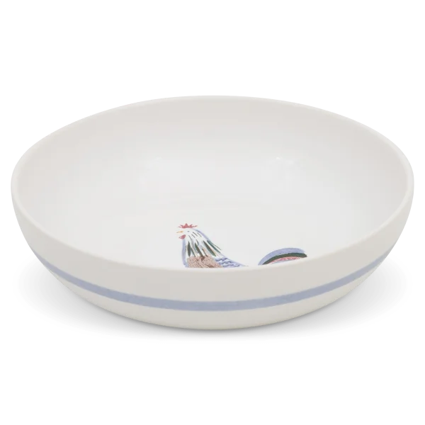 La faïence HB est réalisée par peinture sous glaçure. Après la première cuisson, un émail blanc couvrant est appliqué sur la céramique. Après séchage, nos peintres céramistes, dont certains ont été formés par Hedwig Bollhagen, peignent à la main dans l'émail leurs célèbres décors de faïence colorés. Lors de la cuisson dite lisse, l'émail se lie au décor peint à l'engobe et le fixe. Les couleurs céramiquement "sûres" forment les grands classiques en bleu, jaune et noir. Le rouge est considéré comme une "couleur volatile" et pâlit souvent lors de cette cuisson. Toutes ces couleurs appartiennent aux décors typiques de faïence d'Hedwig Bollhagen, à comprendre comme un hommage à la poterie paysanne qu'elle admirait tant.