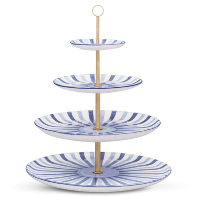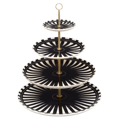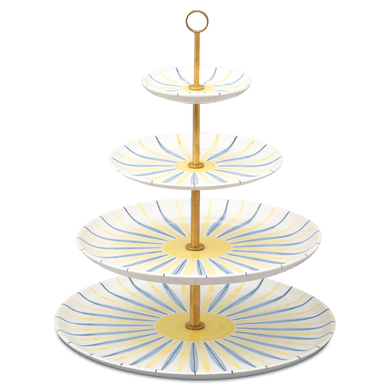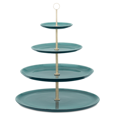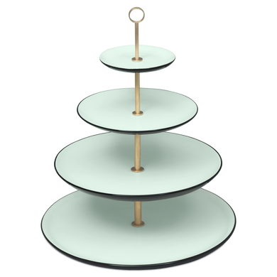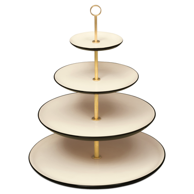 L'étagère à quatre niveaux portant la référence « 611D » de Hedwig Bollhagen est la grande sœur de la version à trois niveaux 611C. Ces deux étagères se caractérisent par leur structure ouverte composée de différents niveaux en forme de plateaux qui s'élargissent progressivement vers le bas. La tige en laiton qui relie tous les étages et se termine par une poignée circulaire vient élégamment parachever le design. D’une hauteur de 36 centimètres, cet accessoire de table, très apprécié depuis l’époque baroque, offre suffisamment de place pour les fruits et les pralines. Une chose est sûre : qu'il s'agisse de fraises, de cerises ou de confiseries, l'étagère à quatre étages de Hedwig Bollhagen permet de présenter avec style fruits et pâtisseries en tout genre.
