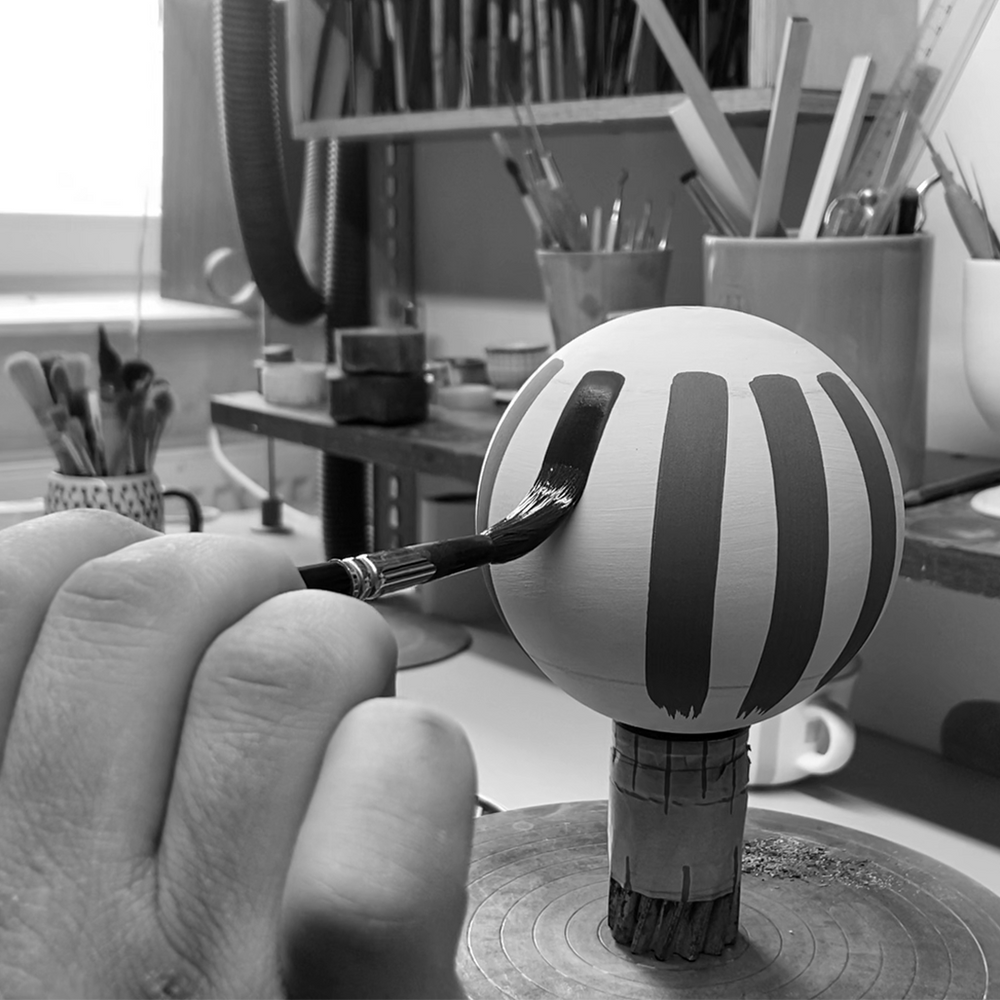 La boule de Noël faite main par Hedwig Bollhagen, portant le numéro de modèle « 980B », embellit le sapin de Noël avec une élégance particulière et séduit par son savoir-faire artisanal perfectionné jusque dans les moindres détails. Avec un diamètre de 7 centimètres, cette boule de Noël en céramique est une décoration de Noël extrêmement festive qui se marie à merveille avec d'autres décorations pour sapin, telles que les boules de Noël 980A, 980C et 980D. Cette boule en céramique de 60 grammes est dotée d'un œillet pratique sur le dessus pour une fixation aisée. Pour les fêtes, rien que le meilleur : avec les décorations de Noël de la boutique en ligne Hedwig Bollhagen, les fêtes de fin d'année sont tout simplement parfaites.