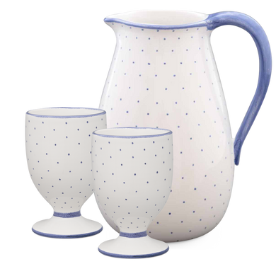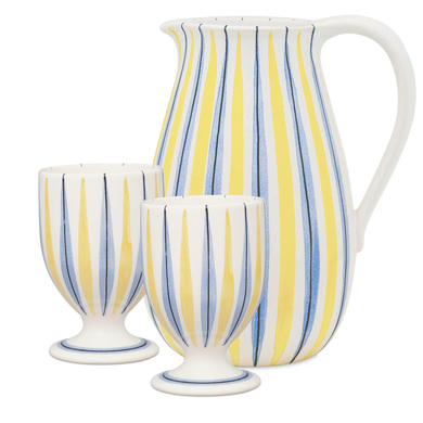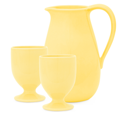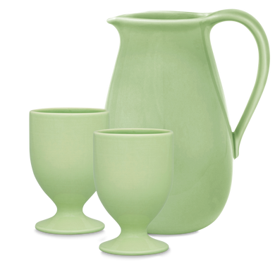 Avec le set de 3 pièces composé d'une carafe et de deux tasses HB 1100 de Hedwig Bollhagen, l'artisanat raffiné s'invite sur votre table. La grande carafe (HB 1100) séduit par sa forme volumineuse en poire et sa contenance d'un litre – idéale pour les jus, l'eau ou les boissons rafraîchissantes. La grande anse assure une bonne prise en main, tandis que le bec verseur anti-gouttes facilite le service. L'ensemble est complété par deux tasses sur pied élégantes (HB 597), conçues par l'artiste Heidi Manthey. Ces tasses en forme de calice à pied conique ont une contenance de 0,2 litre chacun et confèrent à chaque boisson une touche presque royale. Fabriqué à la main dans les ateliers de Marwitz, cet ensemble incarne l’exceptionnelle tradition céramique qui caractérise Hedwig Bollhagen depuis 1934. L’ensemble est parfaitement complété par un plateau de service assorti, pour présenter avec élégance de délicieuses gourmandises et de petits en-cas, ou d’un bol, idéal pour les fruits frais ou les pâtisseries. Un ensemble intemporel qui allie magistralement fonctionnalité et esthétique.