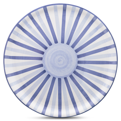 Faïence blanche - rayures bleues et bleu clair - émail brillant