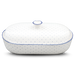 La cocotte en terre cuite 482 est un véritable classique du design signé Hedwig Bollhagen. Fabriquée à la main dans le respect de la tradition, elle séduit par son aspect intemporel, moderne et élégant. Cette cocotte attire tous les regards sur une table joliment dressée. Qu'il s'agisse de préparer des légumes ou de la viande, de cuire du pain ou de mijoter d'autres plats savoureux, cette cocotte pratique est idéale pour toutes vos préparations. Avec cette cocotte en céramique, toutes vos recettes seront réussies du premier coup. D'une hauteur de 14 centimètres, d'une largeur de 20 centimètres et d'un diamètre de 35 centimètres, cette cocotte en terre cuite est à la fois maniable et polyvalente. Que ce soit pour un copieux rôti du dimanche ou pour une cuisson à la vapeur allégée de plats riches en vitamines. Le plat en terre cuite peut être utilisé pour cuire du pain, mais aussi comme pot à pain pour conserver des aliments. Le plat en terre cuite est disponible en plusieurs versions élégantes. De couleur blanche classique, le modèle avec le décor 000 de la collection Fayence s'intègre visuellement dans toutes les cuisines. Le plat en terre cuite 482 avec le décor 137 provient également de la gamme Fayence. Avec ses lignes épurées et son style cottage bleu et blanc, il incarne le style à la fois pratique et élégant des céramiques issues des ateliers HB. Le décor 050-1 de la collection Varius évoque immédiatement le légendaire Bauhaus. Clair, sobre et au style intemporel, ce magnifique plat à rôtir en céramique attire tous les regards.