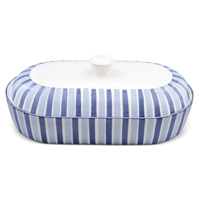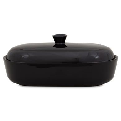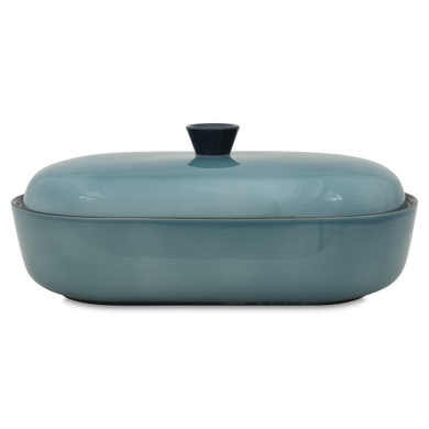 La cocotte en terre cuite 482 est un véritable classique du design signé Hedwig Bollhagen. Fabriquée à la main dans le respect de la tradition, elle séduit par son aspect intemporel, moderne et élégant. Cette cocotte attire tous les regards sur une table joliment dressée. Qu'il s'agisse de préparer des légumes ou de la viande, de cuire du pain ou de mijoter d'autres plats savoureux, cette cocotte pratique est idéale pour toutes vos préparations. Avec cette cocotte en céramique, toutes vos recettes seront réussies du premier coup. D'une hauteur de 14 centimètres, d'une largeur de 20 centimètres et d'un diamètre de 35 centimètres, cette cocotte en terre cuite est à la fois maniable et polyvalente. Que ce soit pour un copieux rôti du dimanche ou pour une cuisson à la vapeur allégée de plats riches en vitamines. Le plat en terre cuite peut être utilisé pour cuire du pain, mais aussi comme pot à pain pour conserver des aliments. Le plat en terre cuite est disponible en plusieurs versions élégantes. De couleur blanche classique, le modèle avec le décor 000 de la collection Fayence s'intègre visuellement dans toutes les cuisines. Le plat en terre cuite 482 avec le décor 137 provient également de la gamme Fayence. Avec ses lignes épurées et son style cottage bleu et blanc, il incarne le style à la fois pratique et élégant des céramiques issues des ateliers HB. Le décor 050-1 de la collection Varius évoque immédiatement le légendaire Bauhaus. Clair, sobre et au style intemporel, ce magnifique plat à rôtir en céramique attire tous les regards.