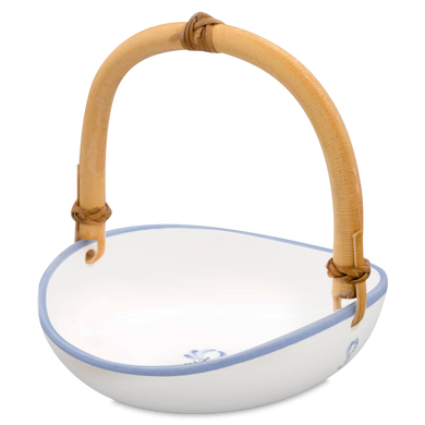 La petite corbeille de Hedwig Bollhagen, portant le numéro de modèle « 503B », séduit par sa forme magnifique et extrêmement élégante. Elle se caractérise par son corps de forme elliptique et organique, surmonté d’une anse. Plus profonde qu’une assiette, plus plate qu’un saladier, cette petite corbeille de quatre centimètres de haut et de 15 centimètres de diamètre pourrait tout aussi bien passer pour un bol. Avec une contenance de 0,2 litre, ce petit panier de 240 grammes n’est ni trop grand ni trop petit. Une chose est sûre : qu’il s’agisse d’un panier de Pâques pour les œufs sorabes, d’un support en céramique pour un panier cadeau ou d’un bol décoratif de Noël pour les amandes, les noix et le croquant, ce petit panier fera sensation.