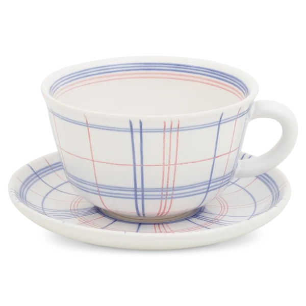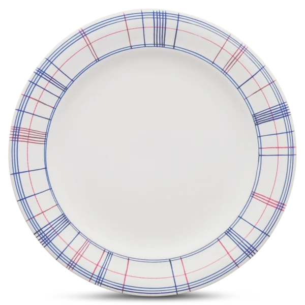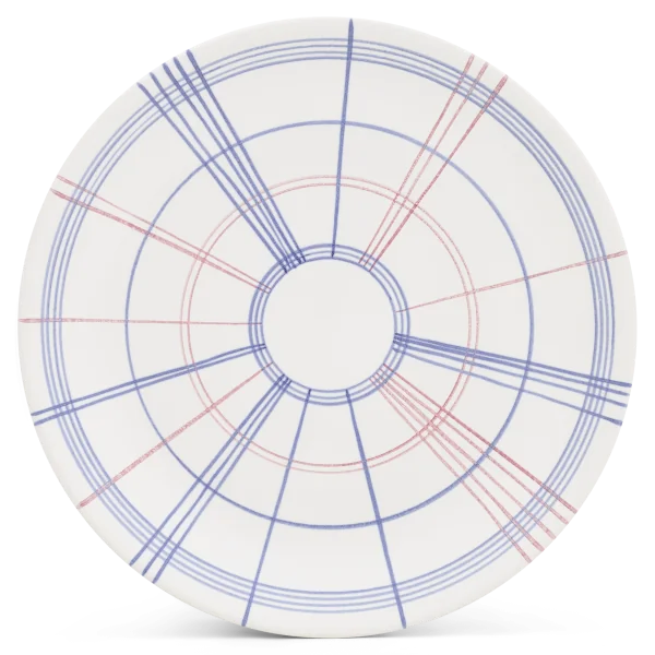 Faïence blanche avec traits bleus et rouges Émail brillant