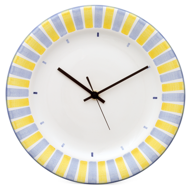 L'horloge murale de Hedwig Bollhagen, portant la référence « 123S », affiche non seulement l'heure exacte avec une grande fiabilité, mais séduit également par sa nonchalance nostalgique. Au vu du design vintage élégant de cette horloge murale fabriquée et peinte à la main, on pourrait croire que le temps s'est arrêté – cette horloge en céramique aurait déjà plu à notre grand-mère. En même temps, cette horloge en forme de plateau séduit par sa simplicité intemporelle, qui met élégamment en valeur même les pièces au style moderne. Grâce à son diamètre de 23 centimètres, l’horloge 123S, haute de 4 centimètres, trouve sa place sur de nombreux murs. La forme en plateau confère à cette céramique durable, qui pèse 500 grammes, un charme rustique. Chaque horloge murale 123S est une pièce unique issue de la fabrication traditionnelle de céramique des ateliers HB à Marwitz.