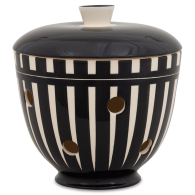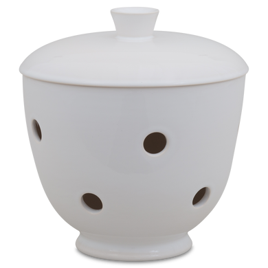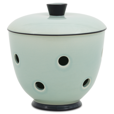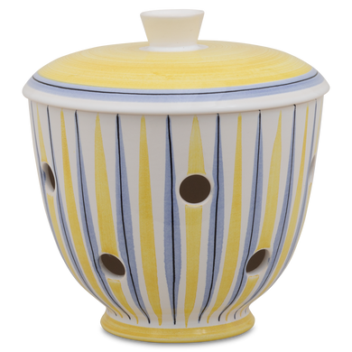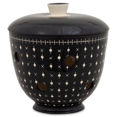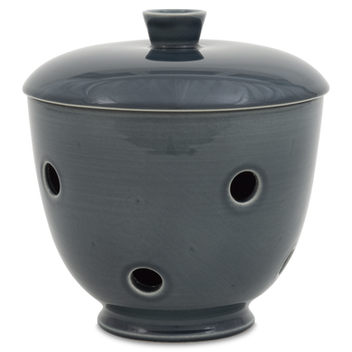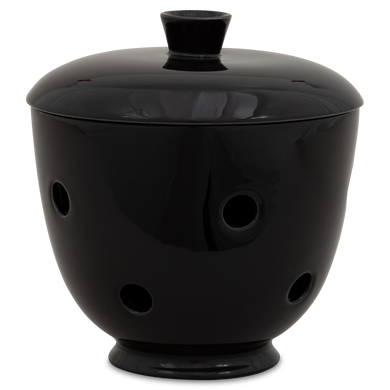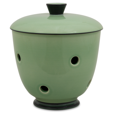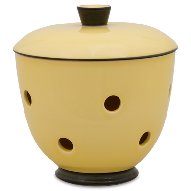 Le pot à oignons « 549DS » de Hedwig Bollhagen met en valeur les échalotes sur l'étagère de cuisine avec une élégance intemporelle. Cet ensemble deux pièces, composé d'un récipient et d'un couvercle, offre, avec ses 14 centimètres de hauteur, suffisamment d'espace pour accueillir des oignons rouges, blancs ou jaunes. Son corps bombé en forme de boule, se rétrécissant vers le haut, est caractéristique. La poignée conique sur le couvercle bombé vers le haut vient harmonieusement compléter le design. Grâce aux nombreux trous d'aération répartis uniformément et mesurant chacun environ un centimètre, l'humidité et la stagnation d'eau sont évitées. Une chose est sûre : à l'intérieur sombre du pot à oignons 549DS de Hedwig Bollhagen, ce légume sain reste frais longtemps et est du plus bel effet.