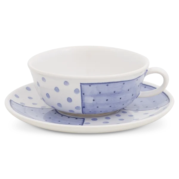 La tasse à thé de Hedwig Bollhagen, portant le numéro de modèle « 501 », séduit par son design classique et nostalgique et son style ancré dans la tradition. Avec un diamètre de onze centimètres et une hauteur de cinq centimètres, cette tasse est presque deux fois plus large que haute – des dimensions idéales pour déguster une tasse de thé en toute décontraction, en laissant s’épanouir pleinement ses arômes. La tasse à thé 501, d'une contenance de 170 ml et fabriquée en céramique artisanale, se caractérise par des contours fluides et délicats. L'anse semi-circulaire ainsi que le bord légèrement bombé vers l'extérieur (« rebord à boire »), qui garantit une bonne tenue en buvant, sont d'autres caractéristiques uniques. Et si un petit incident venait tout de même à se produire lors du service, la soucoupe délicatement incurvée vers le haut rattrapera tout à coup sûr.